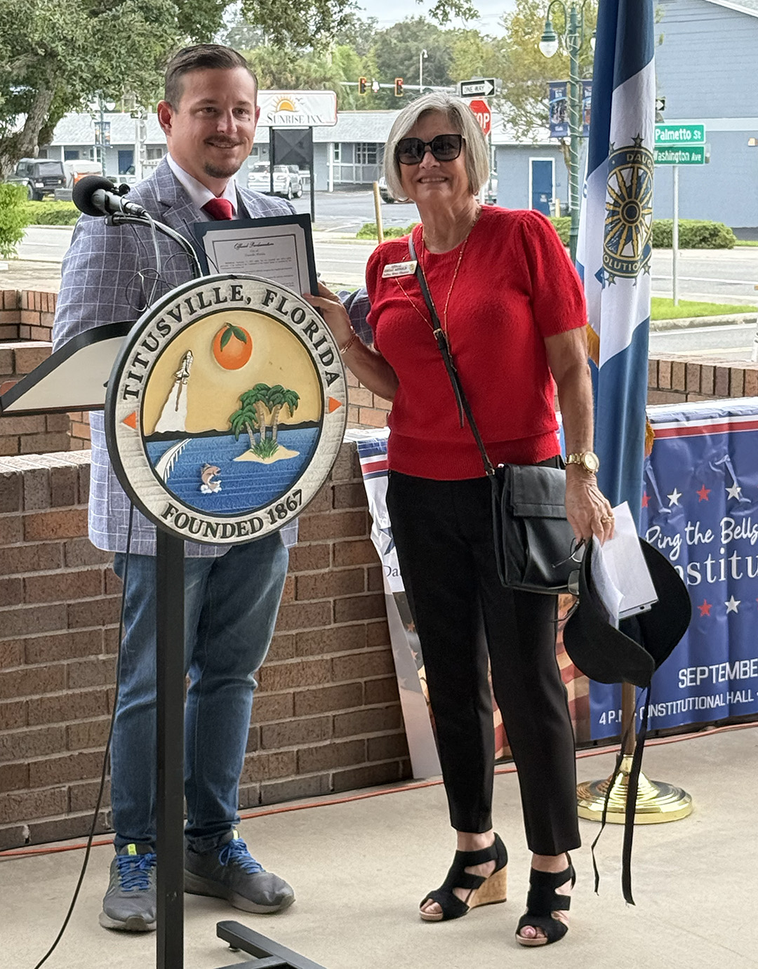 2024 August – Receiving the Proclamation of Constitution Week at the Titusville City Council meeting